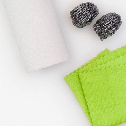 Auch dafür lohnt sich das Müllsortieren: Recycling-Mikrofasertücher bestehen zu 100 Prozent aus Kunststoff-Getränkeflaschen. Recycling-Küchentücher sind aus Altpapier und ersparen Millionen gefällter Bäume. Topfreiniger aus Edelstahl, sogenannte Scheuerspiralen, werden aus Metallresten gewickelt. Auch Kupfer kann zu 100 Prozent recycelt werden: Kupferschwämme eignen sich besonders gut zum Reinigen stark verschmutzter Töpfe. Sie verkratzen diese nicht und haben durch das Kupfer sogar antibakterielle Eigenschaften.