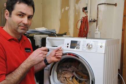 - Wenn möglich, schließen Sie Ihre Waschmaschine an den Warmwasseranschluss an. So muss die Maschine das Wasser nicht elektrisch erhitzen. Wir übernehmen das gerne für Sie.