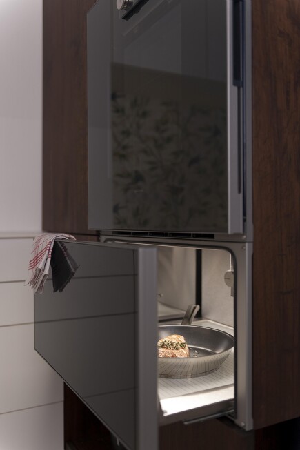 Früher waren Warmhaltefächer unter der Kochfläche üblich. Jetzt entdeckt man wieder ihren Nutzen – als vollintegrierte Wärmeschubladen unter dem Kaffeevollautomaten oder dem Backofen. Man kann unheimlich viel mit ihnen machen – sogar Niedrigtemperaturgaren. Außerdem sind sie perfekt zum Vorwärmen von Tellern und Tassen, Warmhalten von Speisen, An- und Auftauen, Hefeteig gehen lassen, Schokolade und Butter schmelzen, Trocknen und Dörren von Obst und Kräutern, Aufknuspern von Brot, Baguette oder Brötchen …